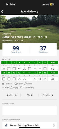 こんばんは みなです😻✨ 打ち初め行って来ましたー! 名古屋ヒルズローズコース! 女性にとても優しくて 久しぶりにゴルフ場から優しさ感じられました😌😌😌 そして今日ティショット安定してて OB0🥹✨ あとウッドもノーミスで全部うまく掴まえれて嬉しかった🥹👏 結果はギリギリ100切りで まぁいいスタートでしょう!笑 あと今週明後日と土曜に行くので もっと結果出せたらうれしーー^_^ バンカー結構入った😓