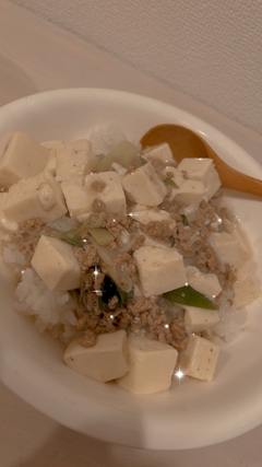 こんばんは うたです👸🏻🩷 久しぶりに塩麻婆豆腐つくったんご いつも味濃くつくりすぎるから今回は丁度よくできた👍🏻 つぎは普通の麻婆豆腐つくろっと